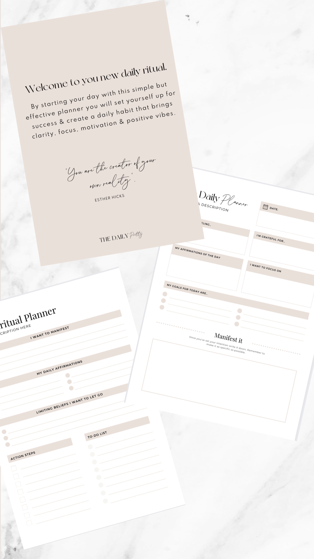 Start your day with this simple but effective planner that will set you up for success and create a daily habit that brings clarity, focus, motivation and positive vibes.